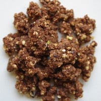 原材料:有機そばの実、有機ココナッツファイン、有機ブルーアガベシロップ、ライスブラン、有機ローカカオパウダー、有機サルタナレーズン、 有機ローカカオニブ、有機バニラパウダー、ヒマラヤピンクロックソルト
