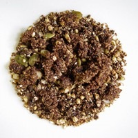 原材料:有機そばの実、有機ココナッツファイン、有機ブルーアガベシロップ、ライスブラン、有機キャロブパウダー、有機パンプキンシード、有機シナモンパウダー、有機カルダモンパウダー、有機ナツメグパウダー、ヒマラヤピンクロックソルト