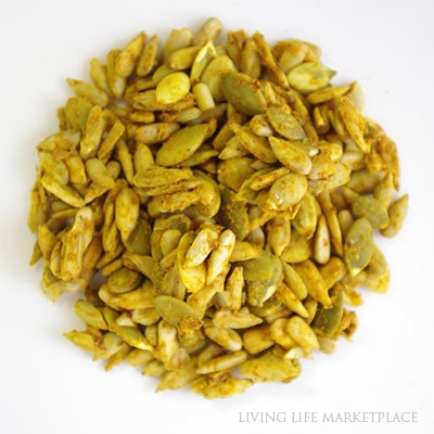 原材料:有機サンフラワーシード、有機パンプキンシード、有機ガーリックパウダー、特別栽培生醤油、有機カレーパダー、有機ドライトマト、ヒマラヤ岩塩、有機アガベシロップ、有機胡椒、ガーリック